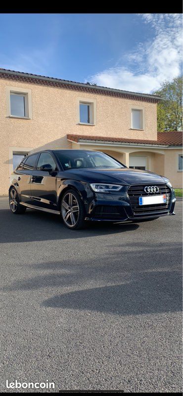 Vends Audi A3 SPORTBACK S-line plus S-Tronic 7. Le véhicule est Full option : Toit ouvrant,virtual cockpit(écran virtuel) ,keyless(démarrage sans clef), jantes 19 pouces, châssis sport, pack S-line plus int/ext , ciel de pavillon gris roche , teinte bleu cosmos etc… le véhicule totalise 56000km très rare dans cette configuration, toutes révisions effectués cher Audi. Prix : 29500€
